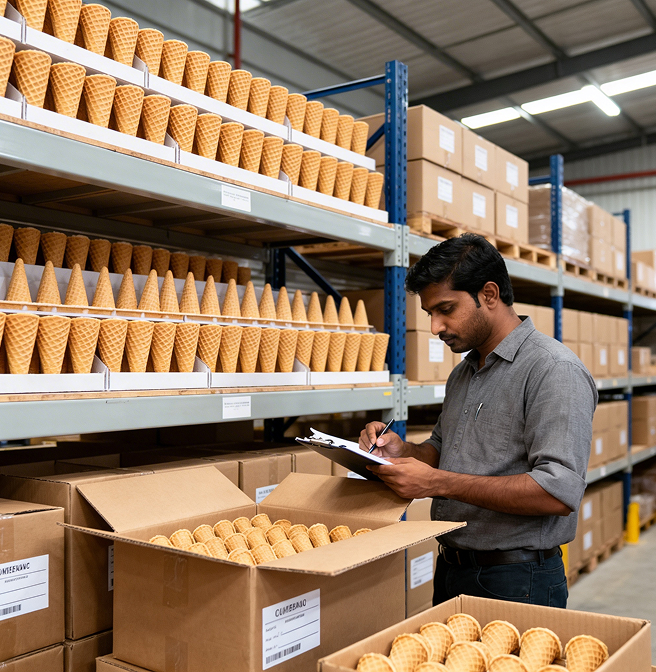 Shelf-life testing confirms that cones maintain acceptable texture, moisture resistance, and performance even after extended storage.